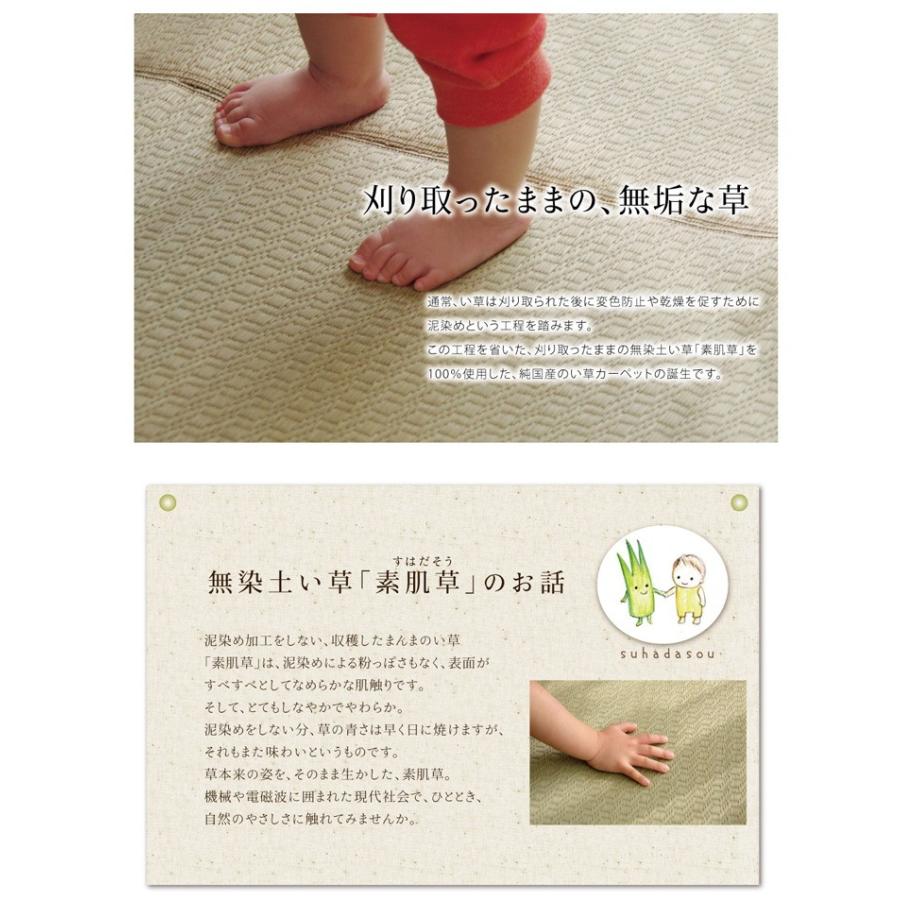 無染土と呼ばれる泥染加工をしていないい草を使用した商品です無染土のい草はほこりも出にくくしなやかでい草本来のすべすべとした肌触りの商品ですヘリには同じ自然素材の綿を使用しており自然の良さを実感して頂けますサイズ約仕様表地い草九州産裏地ウレタンフォムヘリ綿デニム   麻麻日本製送料送料無料但し北海道沖縄離島にお届けの場合は別途お見積もりになります自然素材であることまた職人が一つ一つ手作業にて加工を行うため形状のバラツキや表示サイズと多少ことなることがありますご了承下さい写真は表記サイズと異なる場合がございます