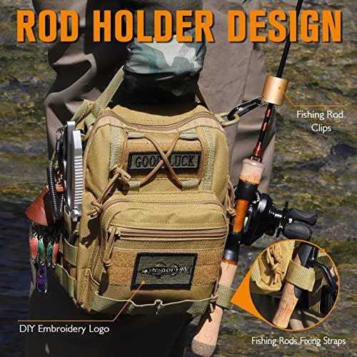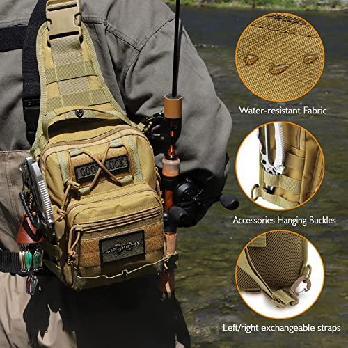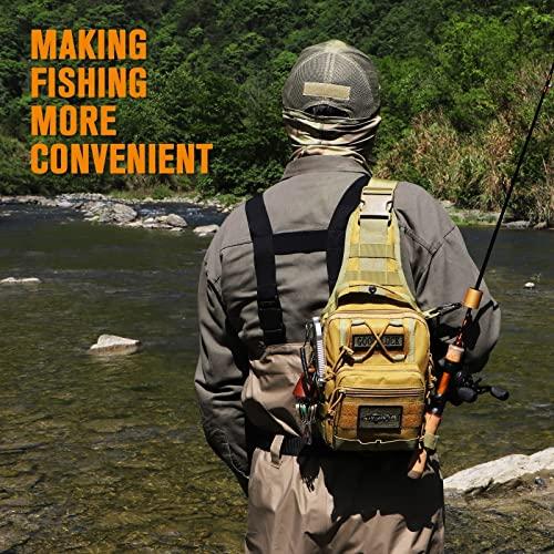 Dovesun フライフィッシングスリングタックルバックパック 防水釣りバックパック 小型タックルボックス2個付き ロッドクリップ DI 並行輸入