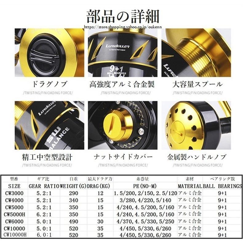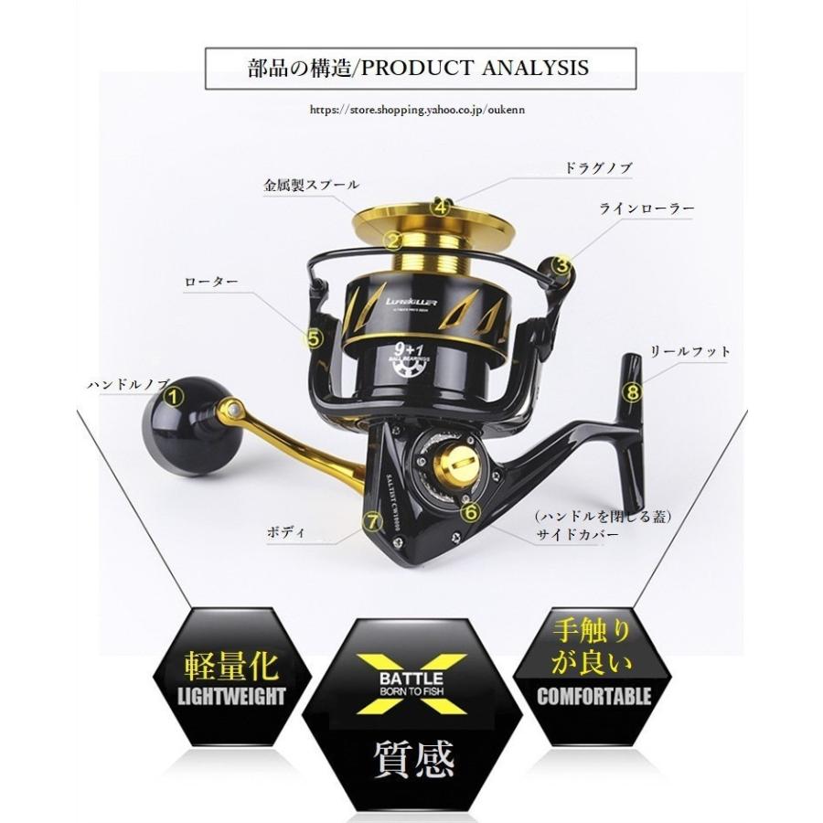 Lurekiller スピニングリール Saltist汎用 3000-10000 釣りリール 軽量 アルミ合金製スプール 高感度 高強度 耐久性 遠投 淡水 海水 ルアー釣り のませ釣り