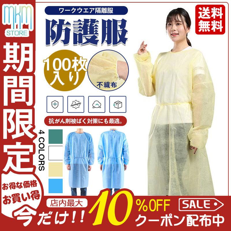 赤字覚悟!防護服 100枚入り 使い捨て ワークウエア隔離服 男女兼用 化学防護服 飛沫対策 不織布防護服 作業着 産業用 汚れ防止