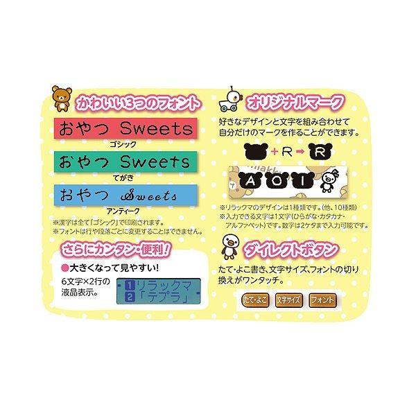 商品名 キングジム テプラ リラックマテプラ 台 ジャンル特徴 リラックマテプラで楽しく簡単ラベル作り 詳細は商品説明をご確認下さい商品ペジは縦長です送料無料決済手数料無料 クレジットカド決済残高払いあと払いソフトバンクワイモバイルまとめて支払い払いかんたん決済コンビニペイジ銀行振込 商品内容 かわいいつのフォント内蔵ダイレクトボタン搭載オリジナルマク内蔵つの入力方式 商品スペック 寸法重量色イエロ対応テプ幅最大印刷可能幅印刷改行数行定長印刷入力方式配列キボド式かなめくり方式対応液晶文字行印字精細度内蔵文字数文字第文字第文字かな英数字記号等文章ファイル約文字ファイルカッタタイプ手動カッタ書体漢字かな英数外枠種内リラックマ種電源単形アルカリ乾電池本別売単形充電式ニッケル水素電池本別売その他仕様イラスト種内リラックマ種付属品試用テプカトリッジ保証期間年間備考重量乾電池テプカトリッジ除くキャンセル返品について商品注文後のキャンセル返品はお断りさせて頂いております予めご了承下さい 送料配送についての注意事項 本商品の出荷目安は 営業日 土日祝除くとなります本商品は梱包サイズ通常商品です本商品は同梱区分神奈川物流倉庫です同梱区分が神奈川物流倉庫と記載されていない他商品と同時に購入された場合梱包や配送が分かれます離島および一部地域への配送時に追加送料がかかる場合がございます