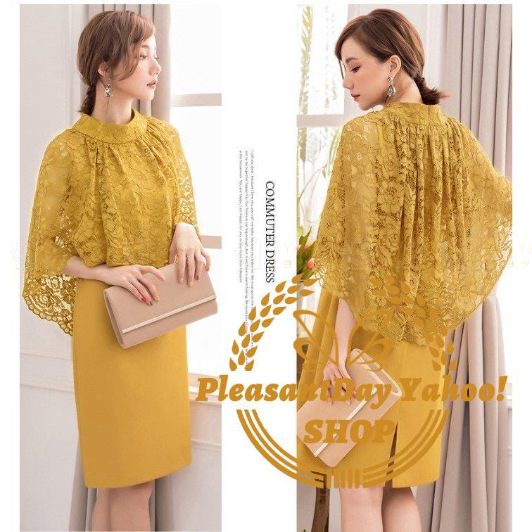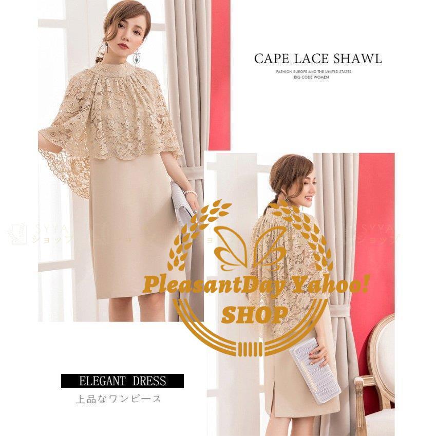 パーティードレス ミディアムドレス 夏 大人 イブニングドレス 膝上丈 大きいサイズ 体型カバー ケープ フォマール おしゃれ 袖あり