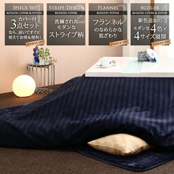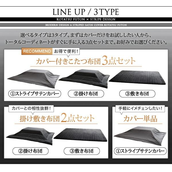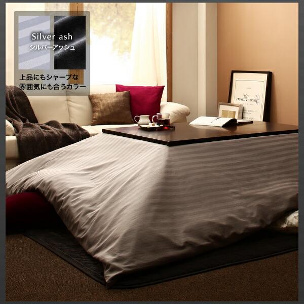 こたつ布団セット モダンスタイル ストライプサテンカバ防ダニこたつ布団シリズ 掛布団敷布団点セットカバは別売 尺長方形天板対応