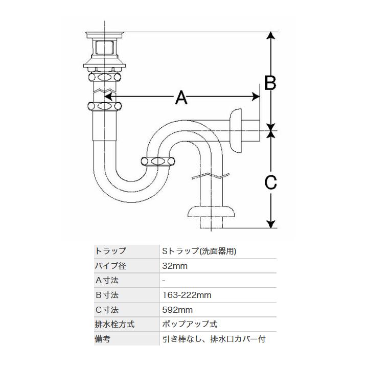 【LF-271SALC】リクシル 洗面器・手洗器用セット金具 ポップアップ式排水金具(呼び径32mm) 床排水Sトラップ(排水口カバー付) LIXIL