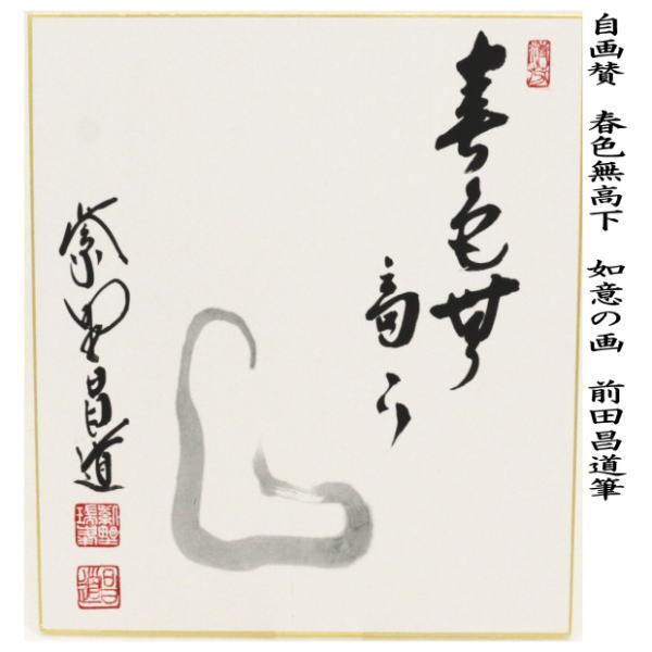 茶道具 色紙画賛 自画賛 春色無高下 如意の画 前田昌道筆 色紙 如意