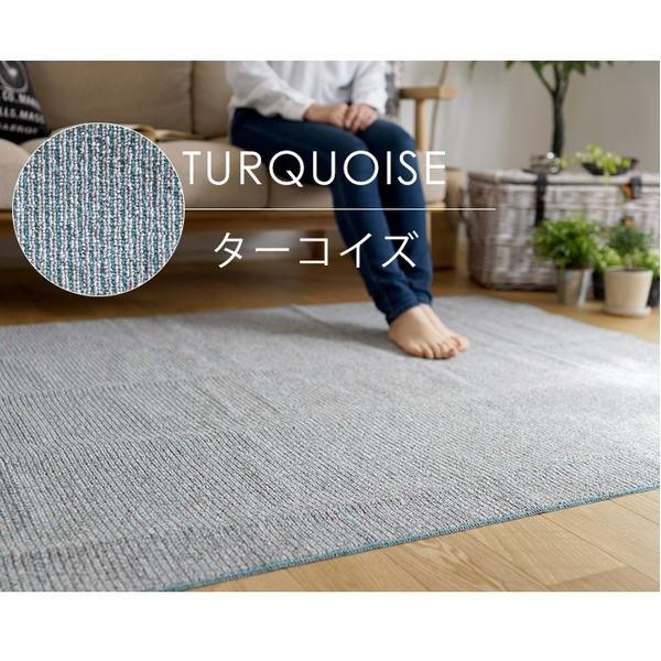 丸洗い対応 ラグマット/絨毯 〔130cm×185cm ターコイズ〕 長方形 日本製 洗える 折りたたみ 軽量 カット可 『カルル』〔〕