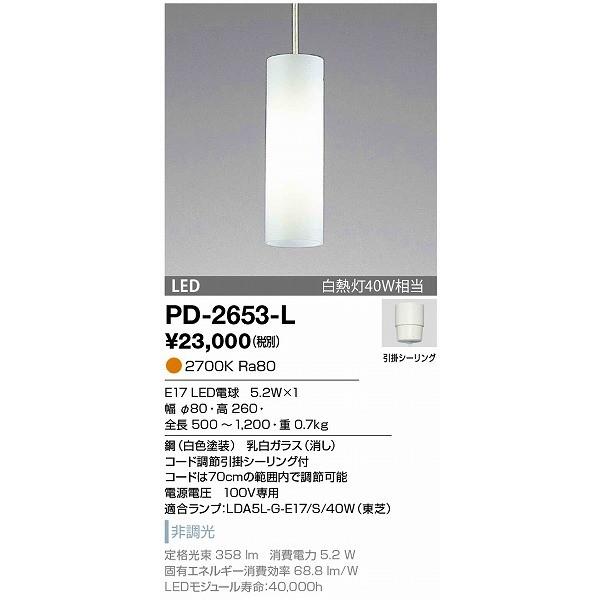 PD-2653-L 山田照明 ペンダントライト 白色 LED(電球色)
