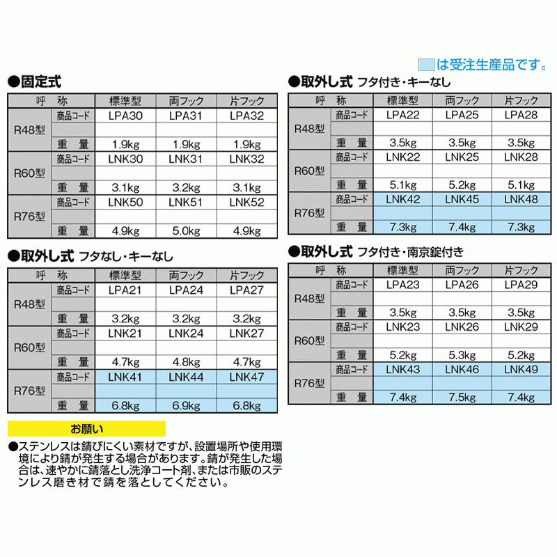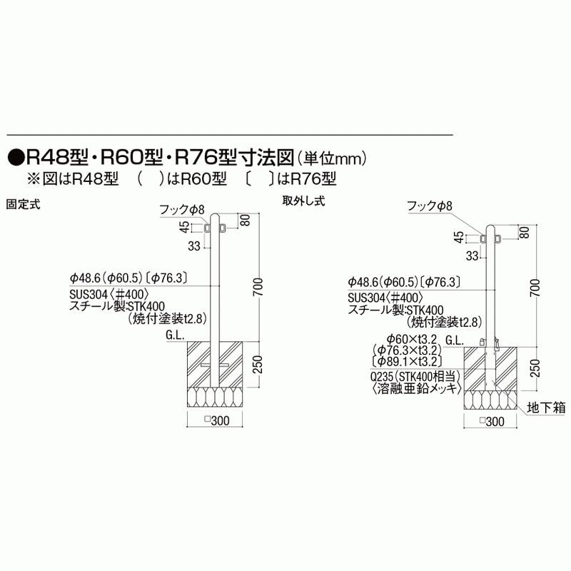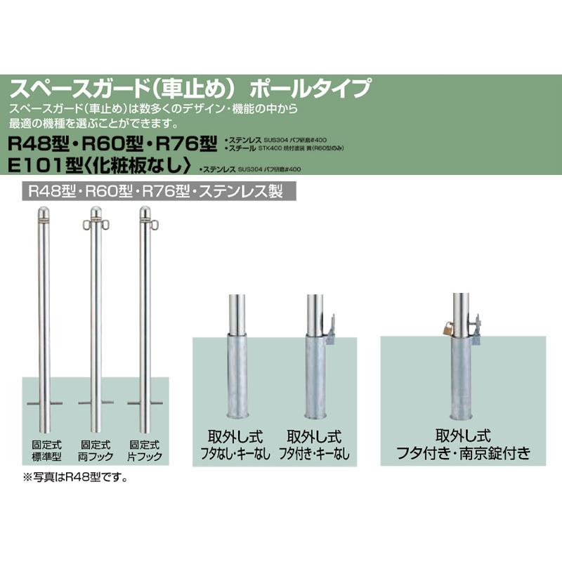 スペースガード 取外し式 フタ付き キーなし R48型 標準型 ステンレス製 LPA22 ポール 反射テープ付