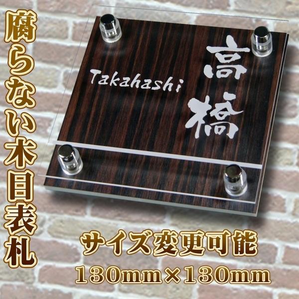 表札 木目 黒檀(こくたん) 自由サイズの木目表札で腐らない人気の表札! 表札サイズ130mm×130mm以内でご指定可能 WDK-130
