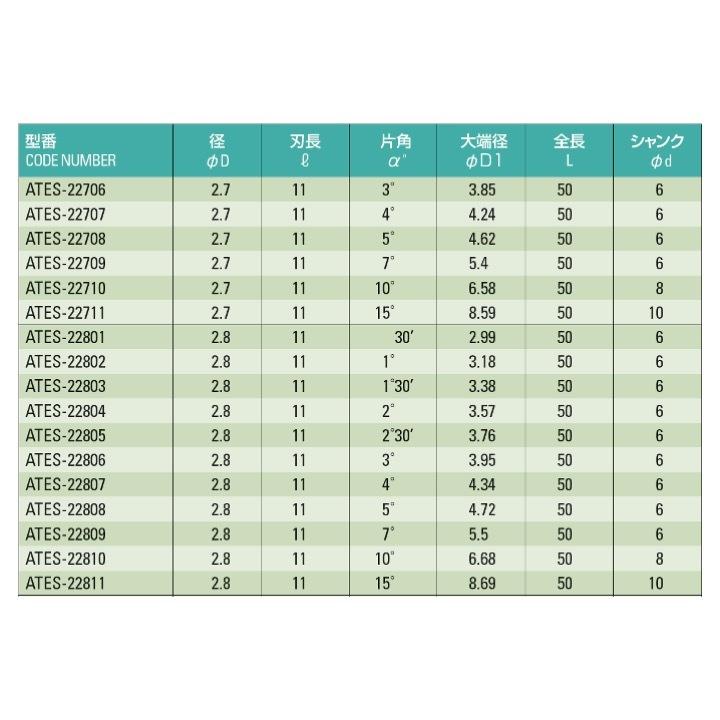 【送料無料】 ATOM ATES-21711 テーパーエンドミル φ1.7x15°