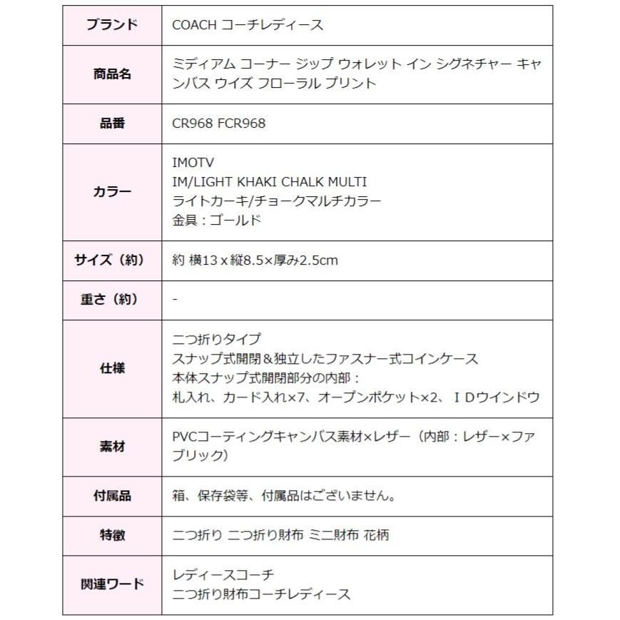 コーチ 折り財布 二つ折り 二つ折り財布 財布 ミニ財布 レディース 花柄 バラ 薔薇 アウトレット COACH シグネチャー CR968 FCR968 IMOTV ライトカーキ/チョーク