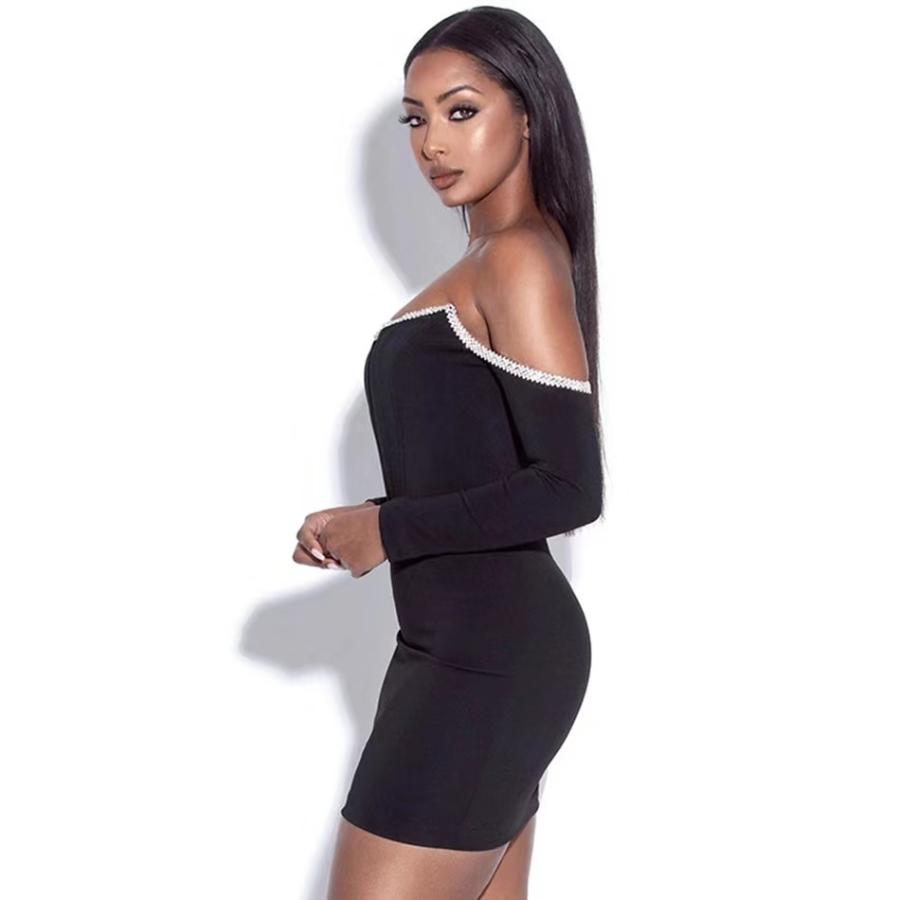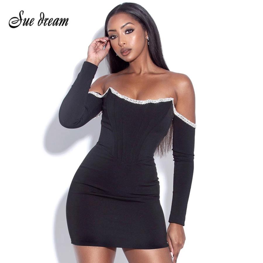 バンテージ ボディコン コルセット ドレス クリスタル ロング 長袖 ミニ セクシー オフショルダー ホルターネック レディース