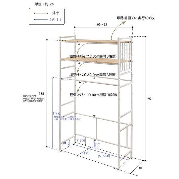 伸縮式(幅65〜95cm)ランドリーラック 組立品