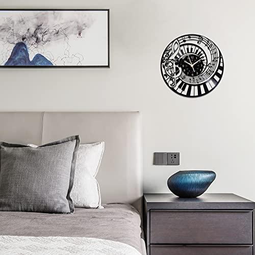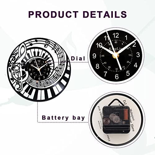 KingLive ピアノキーミュージッククロック ビニールレコード壁時計 ピアノと音楽愛好家に 音楽アート壁 12インチ音楽時計 リビン 並行輸入