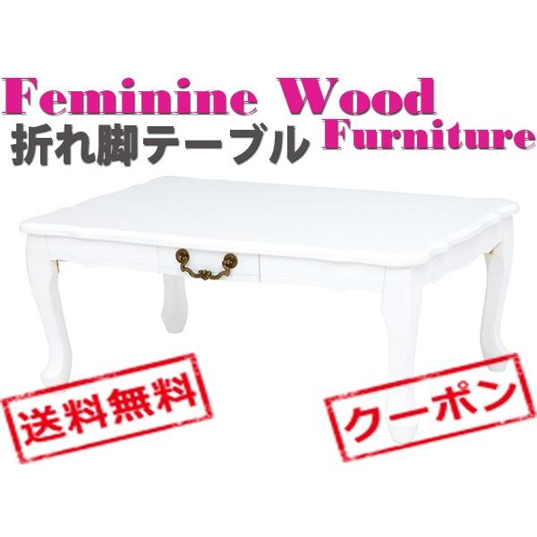Feminine Wood Furniture フェミニンシリーズ 折れ脚テーブル (ホワイト) MT-6030WH