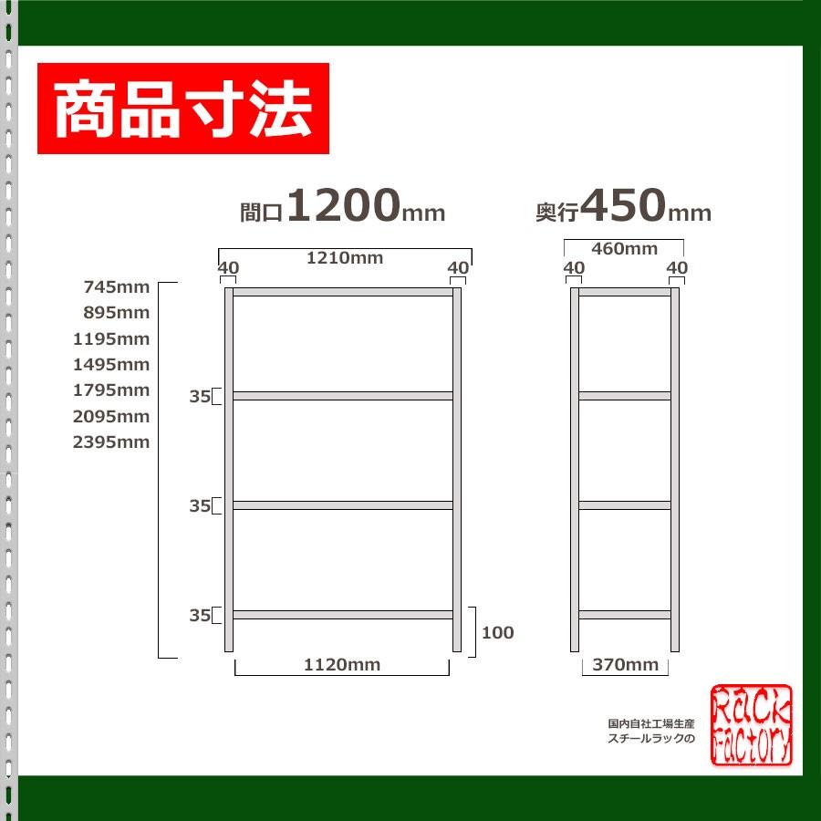 ラックファクトリならではの国内自社工場生産品 では全品自社国内工場生産直販だから在庫切れの心配なし安価でしっかり棚板追加も自在の全段ボルトタイプ字型のアングルに棚板を設置するオソドックスなスチルラックです天地をはじめ中間棚板も全てボルトで固定する方式のため安価ながら 抜群の耐荷重性能を発揮安価安心の堅牢性でご愛用いただける商品ですお届けやご注文に関するご注意 必ずお読み下さい大型配送物のため車の場合運送へ支店引取をお願いする場合がありますお届け先お荷物の重量によって配送業者が変わります業者の指定はできません重量物につき原則建物一階での軒先渡しのみとなります搬入設置は行えません商業施設の店舗宛ての場合には搬入が必要になるため配達できない場合があります日曜日祝日の配送は出来ません時間指定は納期の明記のみとなります大型配達物のため北海道沖縄離島一部過疎地の配達には対応しておりません 耐荷重変更段 高さ変更 横幅変更 奥行変更 段数変更段段段