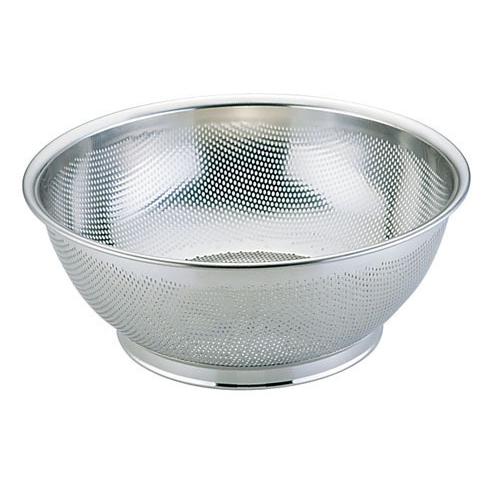パンチング 浅型ザル ステンレス製パンチング板金網製の煮籠のように針金が折損して煮炊物の中に入り込む心配はありません耐久性抜群にて錆びに強く衛生的です 仕 様 サイズ 直径高さ 板 厚 穴 径