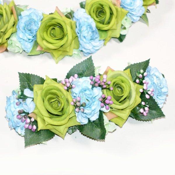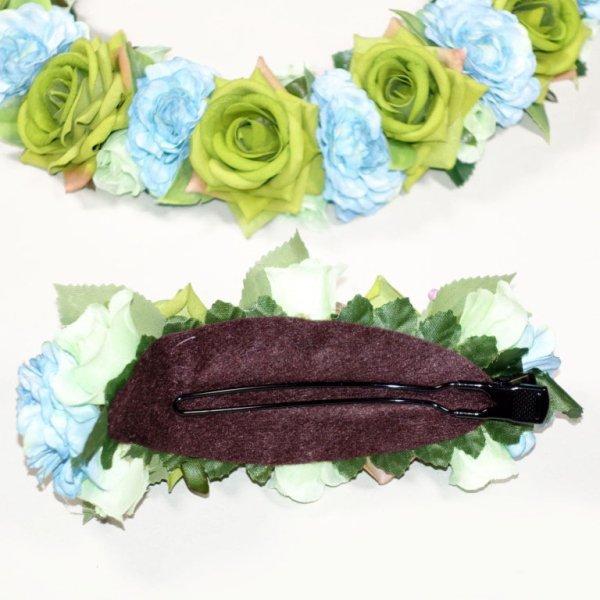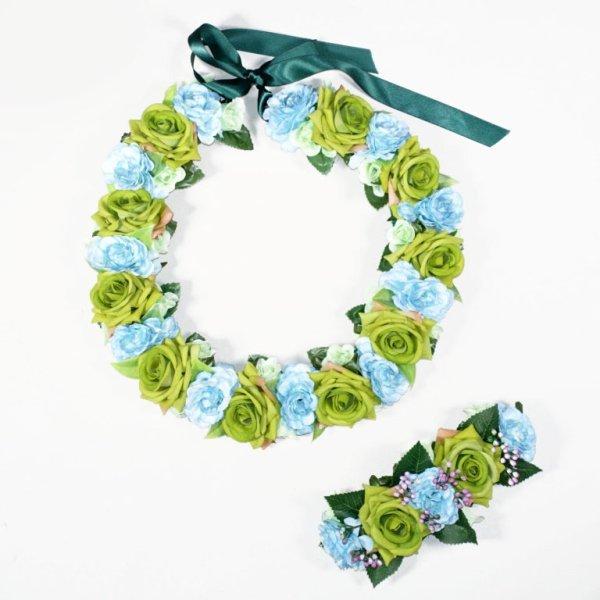 フラダンス レイ アレンジ レイ&ヘアクリップセット KCLS-019 ローズローズレイ&クリップ(ブルー/グリーン) セット