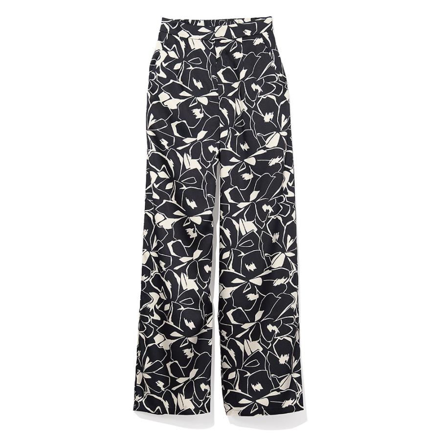 パンツ ブーツカット ワイドパンツ 洗える ウエストゴム ワイド 柄 プリントパンツ イタリア素材 フラワー柄プリントワイドパンツ 245802