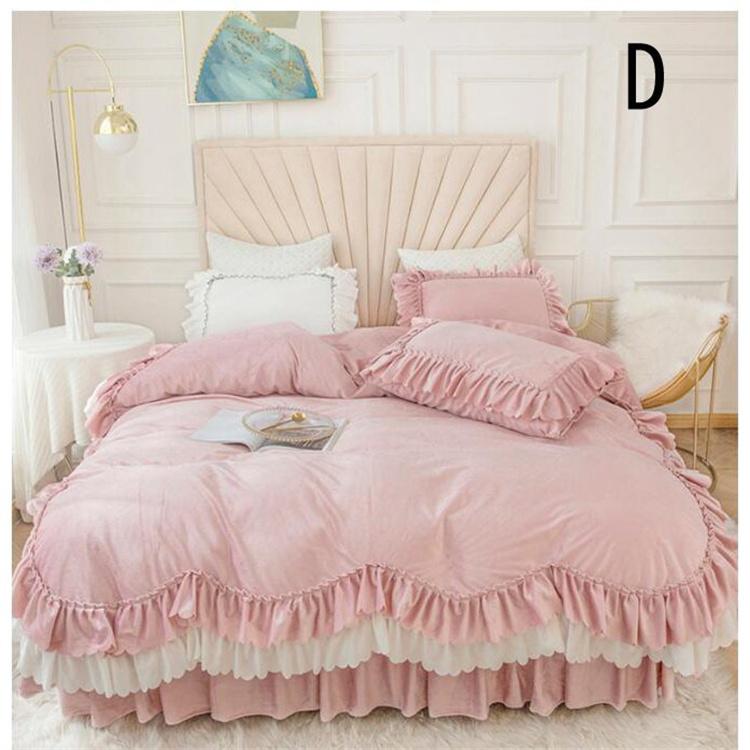 姫系 寝具カバーセット ベッド用品 布団カバー 4点セット 秋冬 フランネル 暖かい 掛け布団カバー 枕カバー ベッドスカート 布団 セット 可愛い おしゃれ