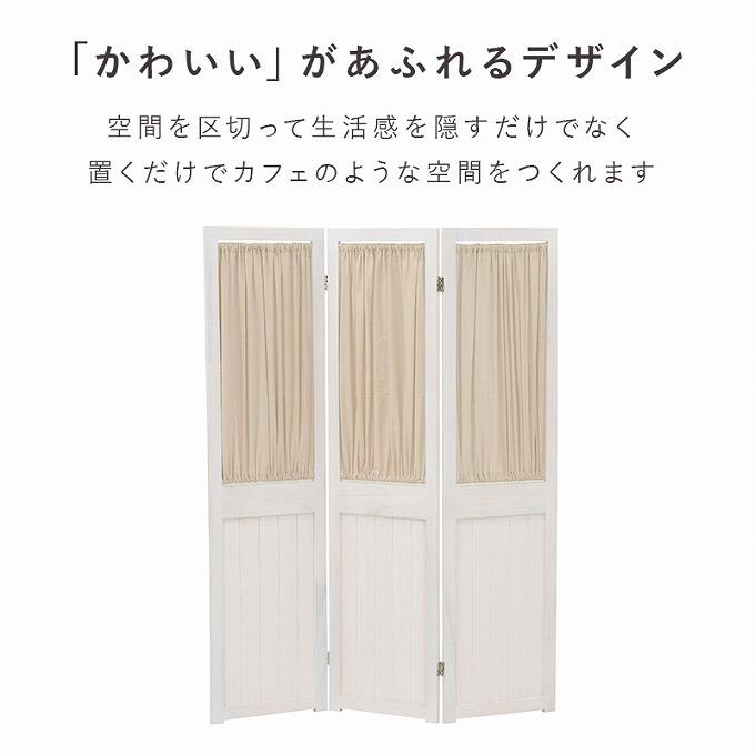 パーテーション 3連 衝立 おしゃれ 間仕切り ついたて カーテン ガーリー フェミニン 北欧 カフェ アンティーク調