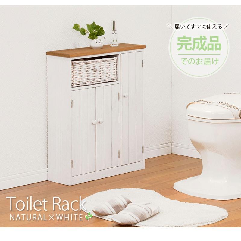 トイレラック スリム おしゃれ トイレ収納 ロールストッカー カントリー調 バスケット付き