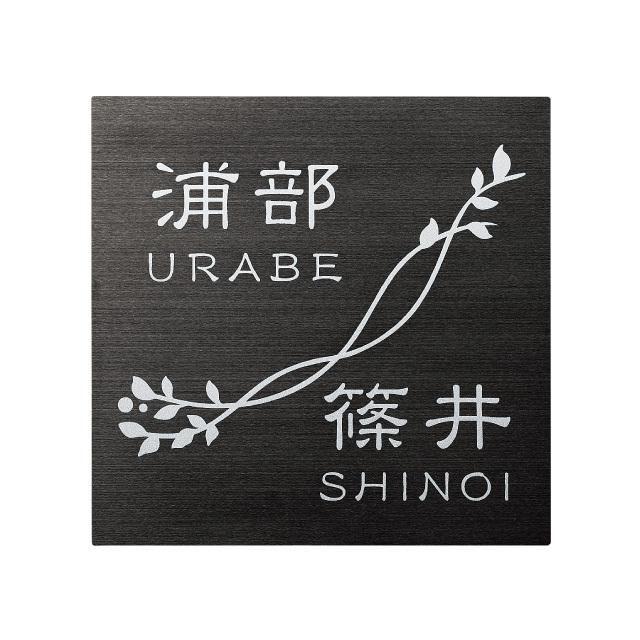 ブラックステンレス 表札 品質の良い丸三タカギ製 二世帯用 180×180ミリ スクアド SQL-B-12