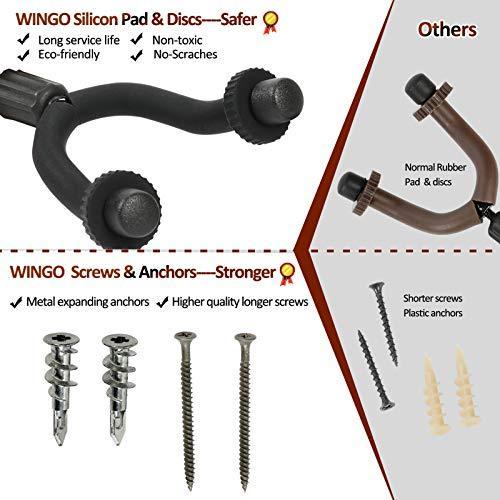 WINGO アコースティックギター&エレキギター用壁掛けギターハンガー&取付用ブラケットホルダー -2個セット (黒クルミ材)WH-08BW-1