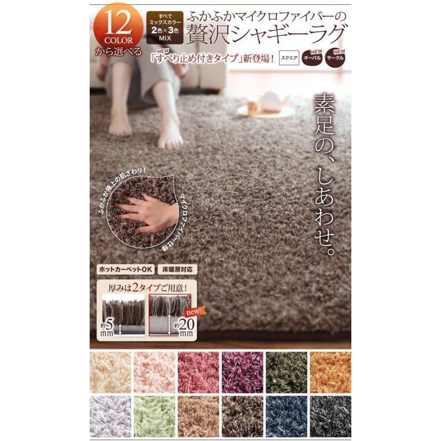 商品名ふかふかマイクロファイバの贅沢シャギラグサイズ約厚さタイプポイント極細のマイクロファイバミックス糸が織り成す色鮮やかな表情を持ち合わせたシャギラグと程良い長さの毛足がふかふかでなめらかな肌触りを実現もちろん冬場はホットカペットや床暖房にも対応カラ色アイボリロズピンクサイレントブラックミッドナイトブルサニオレンジモスグリンワインレッドモカブラウンナチュラルベジュラベンダさくらオリブグリンサイズ本体約厚さタイプパイル長約材質素材ポリエステルマイクロファイバ中材ウレタンフォム裏面不織布仕様床暖房ホットカペット対応折りたたみ可保管方法平織り発送の目安営業日以内に発送予定配送について玄関先お届け配達日時指定可備考はご利用できませんこちらの商品は沖縄離島への配送はできません 画像 程よい踏み心地厚さタイプ 直径円形 オバル もっとふかふか厚さタイプ 商品情報 商品名 ふかふかマイクロファイバの贅沢シャギラグサイズ約厚さタイプ ポイント 極細のマイクロファイバミックス糸が織り成す色鮮やかな表情を持ち合わせたシャギラグと程良い長さの毛足がふかふかでなめらかな肌触りを実現もちろん冬場はホットカペットや床暖房にも対応おしゃれな色展開とサイズ展開に加えさらにクッション材のウレタン厚が選べるタイプをご用意お部屋の雰囲気や用途ご予算に合わせてお選びいただけます カラ 色アイボリロズピンクサイレントブラックミッドナイトブルサニオレンジモスグリンワインレッドモカブラウンナチュラルベジュラベンダさくらオリブグリン サイズ 本体約厚さタイプ パイル長約 材質 素材ポリエステルマイクロファイバ 中材ウレタンフォム 裏面不織布 仕様 床暖房ホットカペット対応 折りたたみ可 保管方法 平織り 発送の目安 営業日以内に発送予定 配送について 玄関先お届け 配達日時指定可 備考 はご利用できません こちらの商品は沖縄離島への配送はできません カテゴリリンクトップ リビング用ラグ一覧はこちら ストアトップはこちら