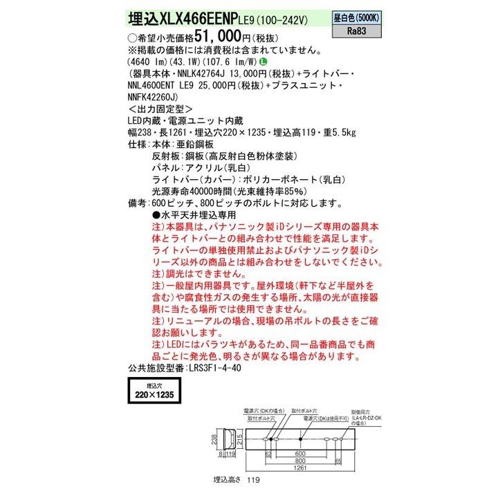 【法人様限定】【XLX466EENPLE9】パナソニック 天井埋込型 LED(昼白色) 40形 一体型LEDベースライト 乳白パネル パネル付型 Hf蛍光灯32形 6900 lm/き品