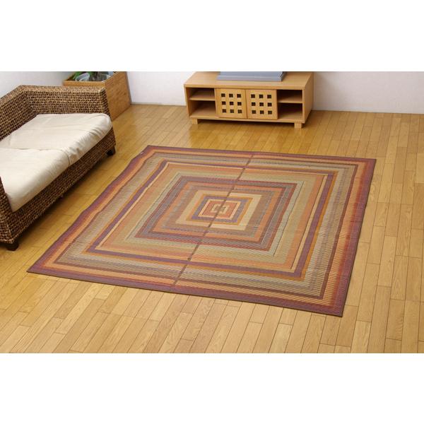 イケヒコ 純国産 袋三重織 い草ラグカーペット 『DXグラデーション』 ブラウン 約191×191(裏:不織布) 1709170