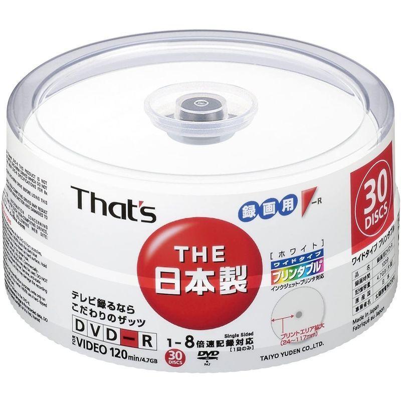 太陽誘電製 That's DVD-Rビデオ用 8倍速120分4.7GB ワイドプリンタブル スピンドルケース30枚入 DR-120WWY30