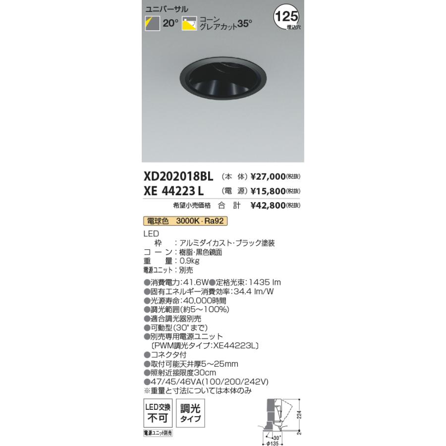 コイズミ照明 ユニバーサルダウンライト XD202018BL 電源ユニット別売 工事必要