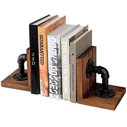 MyGift 卓上ブックエンド本立て インダストリアルパイプとラスティックウッド 2セット