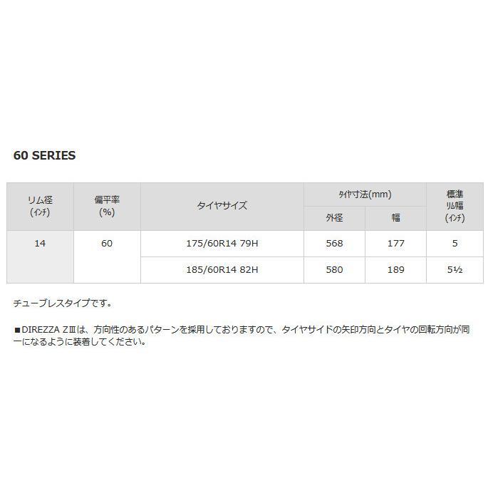 ダンロップ DIREZZA ZIII ディレッツァ ズィースリー 185/60R14 82H ハイグリップ スポーツタイヤ 1本価格 2本以上ご注文にて送料無料