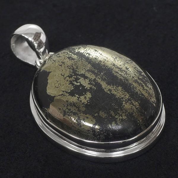 パイライト ペンダントヘッド ブラック シルバー オーバル 天然石 パワーストーン マトリックスパイライト 贈り物