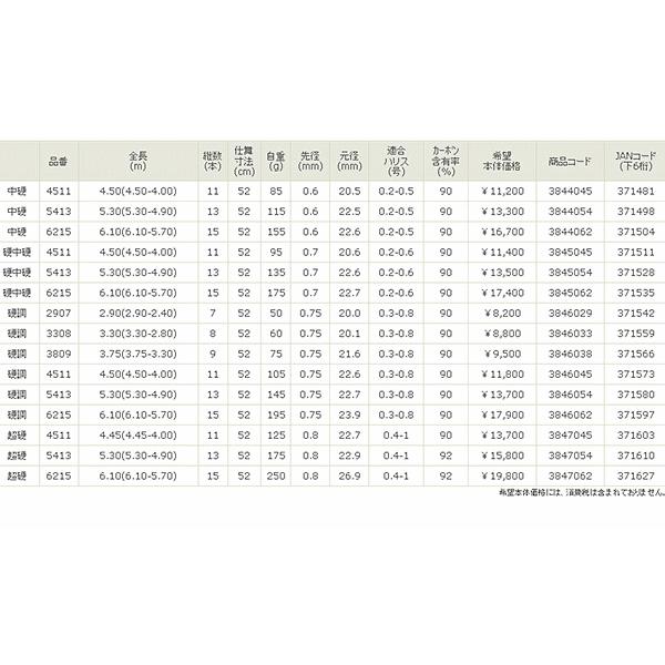 本の竿で段階のサイズに対応足場の悪い場所やポイントの状況に応じて使い分けできますまたシステムは大物の取り込み時にも威力を発揮瞬時に延ばす縮めるという抜群の対応力に磨きがかかりましたしなやかな穂先から胴への理想的な重心移動により掛けた獲物を逃しませんしなやかなカボンソリッド穂先つかみ易いシステム硬調の一部モデルは構造上ウェイ部分は短いタイプとなりますグリップ部に滑り防止処理つかみ易いシステム瞬時に伸縮可能な伸縮部をつかみ易く設計したシステムを採用釣場や仕掛の変化など幅広い状況に対応可能段階に長さを調整可能なシステムを搭載しています硬調の一部モデルは構造上ウェイ部分は短いタイプとなります 掲載写真は参考掲載ですお譲りする商品は上記タイトル記載商品点のみですお間違いのないようお願い致しますスペック表 本体価格には消費税は含まれておりません