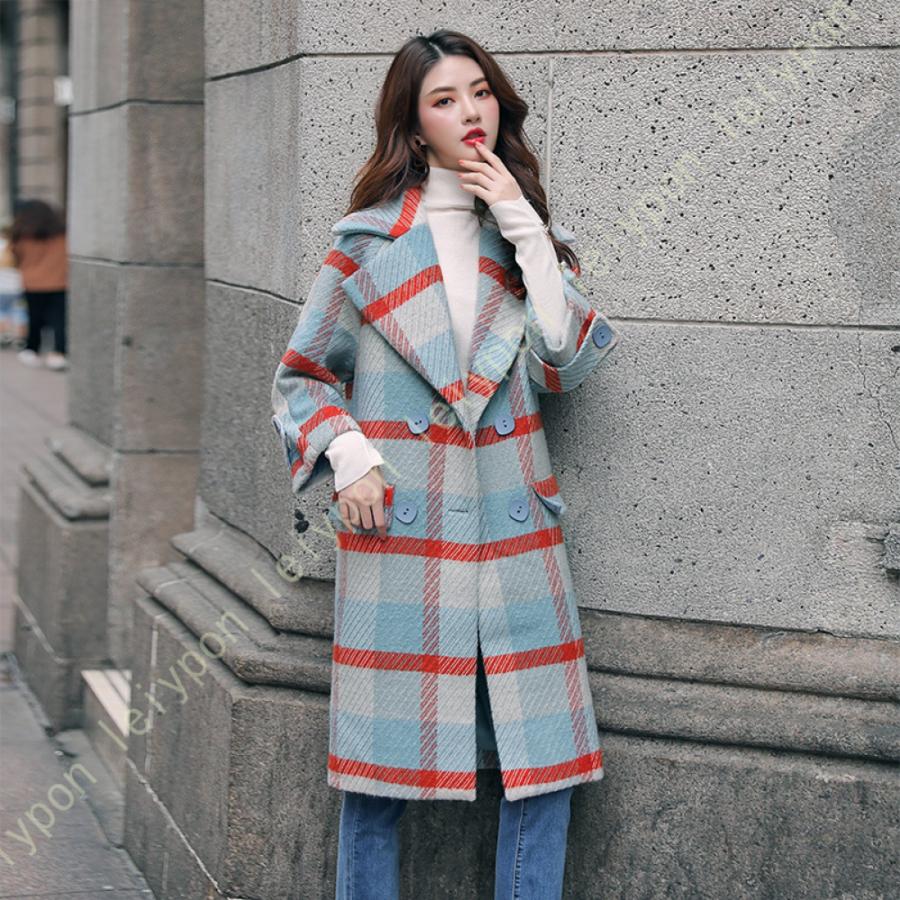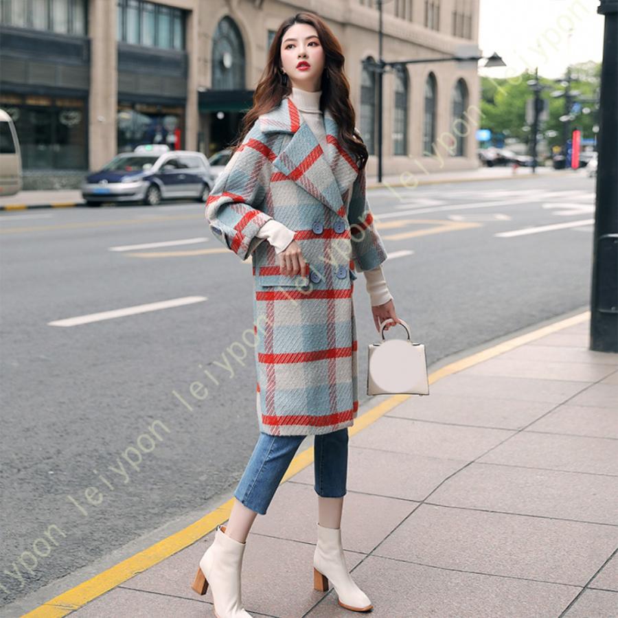 チェスターコート レディース チェック柄 スリム ロングコート アウター 厚手 ロングコート 秋 冬 韓国ファッション アウター ラシャコート レディースコート