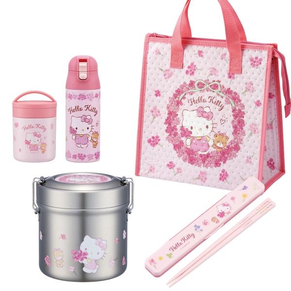 ハローキティ フラワーリース お買得 5点セット 真空ステンレスランチボックス 箸&箸箱 不織布 保冷バッグ デリカポット 水筒360ml セット