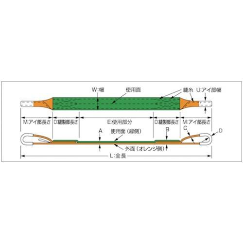 荷役用品 吊りクランプスリング荷締機 ベルトスリング 適度な伸びが衝撃を柔らげますグリン面使用面とオレンジ面外面が色分けされていますベルトスリングの構造上グリン面使用面とオレンジ面外面では耐久性が異なりますのでグリン面使用面で正しく使用してください使用限界がわかる標示赤色の糸が織り込んであり交換の目安になります鋼材メッキ塗装などの表面加工鋼材鋼管鋼板などの運搬機械自動車および自動車部品精密機械の運搬全長ベルト寸法幅厚さアイ部幅アイ部長さアイ部厚さ縫製部長さ使用面色グリン裏面色オレンジ最大使用荷重 規格品一部規格外寸法品あり 規格品以上規格品以上規格品 規格品使用温度以下両端アイ形ナイロン内部ポリエステル使用可能温度以下耐化学薬品用では荷役用品 吊りクランプスリング荷締機 ベルトスリング