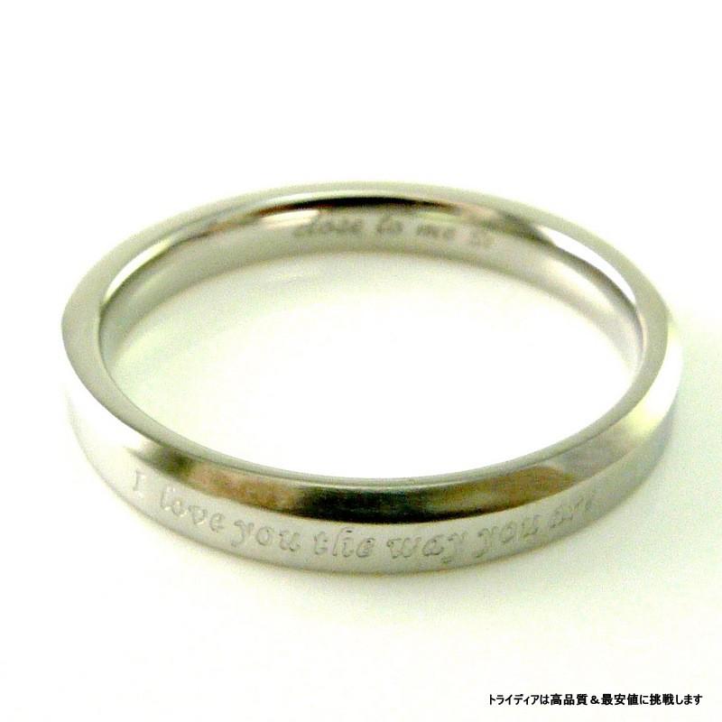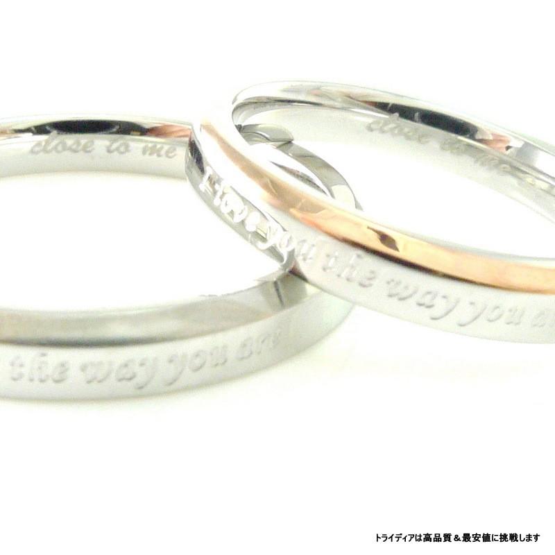 細身のシンプルなスタイルにそのままのあなたを愛しているの意味の英字をデザインエッジ部分を斜めにカットしたシャプな演出はステンレス素材ならではレディスタイプにはそのエッジ部分をピンクコト加工をプラスシャプ中にも柔らかい女性的な印象を感じさせますシンプルで丈夫なステンレスリングはペアアイテムにピッタリですこちらは本セットでの販売となります人気のジュエリブランド クロストゥミがお届けする注目のステンレスシリズ素材サジカルステンレス幅約厚み約サイズメンズ号号号号レディス号号号号英字 そのままのあなたを愛してる 納期営業日付属品専用ペパバッグケス クリスマス ホワイトデ バレンタイン 誕生日 ジュエリ 贈り物 ギフト