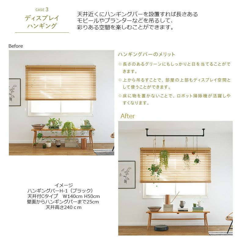 ハンギングバー H-1 天井付Cタイプ 幅90cm×高さ25cm ハンガーパイプ セット ブラック ホワイト 日本製 トーソー ディスプレイ 収納