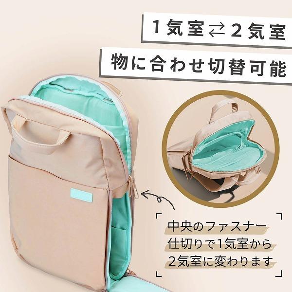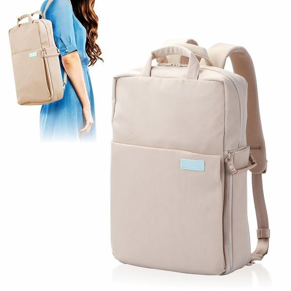 商品情報休日に持って出かけたくなる バックパックのリミテッドカラモデルです 少しくすませたやわらかな色合いの表生地と爽やかなパステルカラの内生地を採用したバイカラデザインです表は風合いのあるシワ加工生地を採用しています生地特性により個々で表情が異なります 背面にショルダ収納ポケットがありショルダベルトを収納しハンドバッグとしても持ち歩けます インチまでのパソコンを独立して収納可能です 中央のファスナ式仕切りを外すことで二気室バッグから一気室バッグへ切替えられる二気室貫通構造です 上部空間には小物を仕分けて収納するのに便利な収納ポケットとファスナポケットが付いています 右側面収納口には簡単に開閉できるハンドル式ダブルファスナと音がせずスマトに開閉できるマグネットフラップを採用しています 右側面の収納スペスには着替えやポチなどが収納可能です 左側面の収納スペスには折りたたみ傘やペットボトルを独立して収納可能です 前面に大きく字型に開閉でき手帖などの小物が取り出しやすいファスナポケットを配置しています 背面にバッグをおろさずにスマトフォンなどを収納可能なファスナポケットを配置しています 背面にはキャリバへ固定できるキャリベルトが付いています 表生地と内生地全体に撥水加工を施し水を弾きます内部への水の浸入を完全に防ぐものではありません 商品詳細外寸幅奥行高さ ハンドルショルダベルト部含まず参考収容寸法バッグ本体内寸幅奥行高さ収納部内寸幅奥行高さボトル収納部内寸幅奥行高さポケット数上部収納スペス内側ポケットファスナポケットポケット前面収納スペス内側ポケット右側面収納口左側面ボトル収納口背面ショルダ収納口隠し背面ポケットカラサンドベジュ材質表面裏面ポリエステル撥水重量約 ご注意 ご注文のタイミングにより納期がかかる又は完売などの場合もございます 商品の情報詳細画像について保証は致しかねます 画像はイメジです商品以外が含まれる又は商品と異なる場合があります 必ずメカホムペジなど合わせてご確認ください 北海道沖縄その他離島は配送致しかねますあらかじめご了承くださいメカ エレコム型番 こちらの製品情報ペジもご覧ください