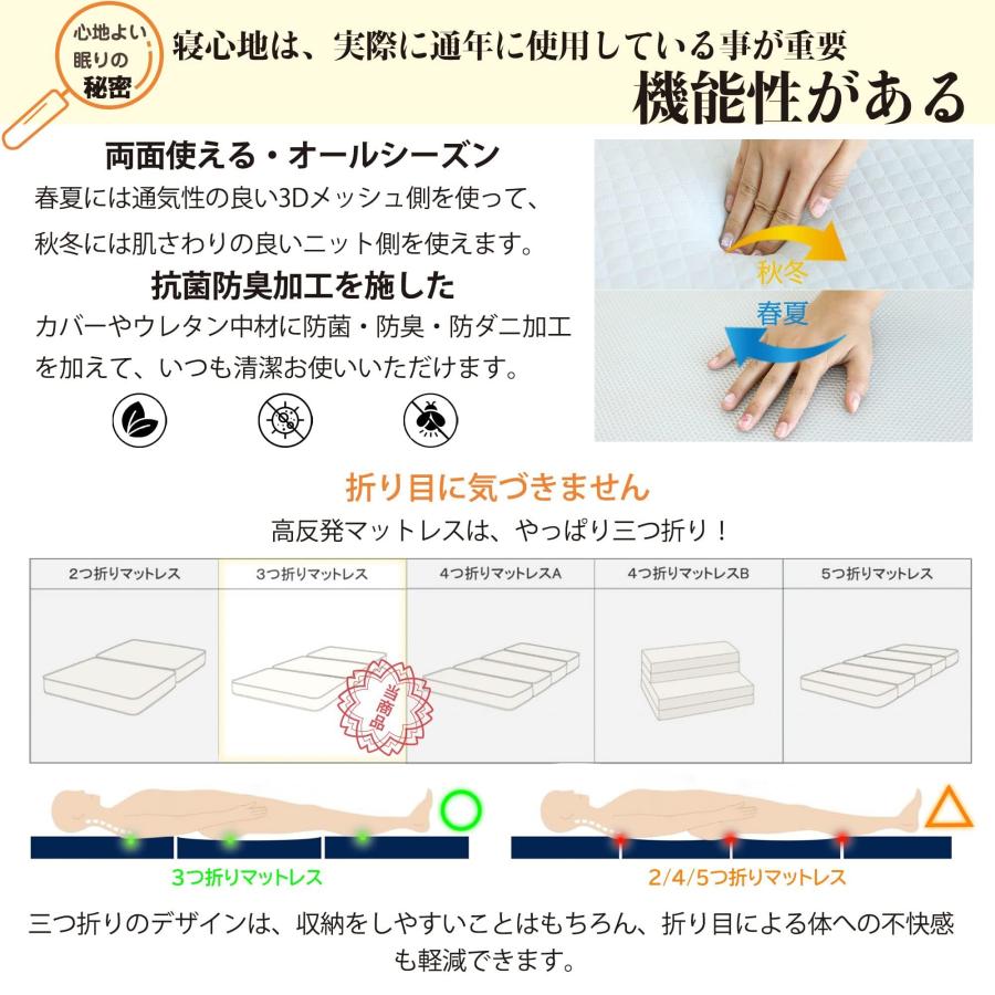 マットレス シングル 三つ折り 折り畳み 極厚10cm 高反発 210N 25D リバーシブル ニット&メッシュ 取っ手付き 洗えるカバー