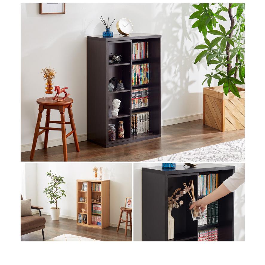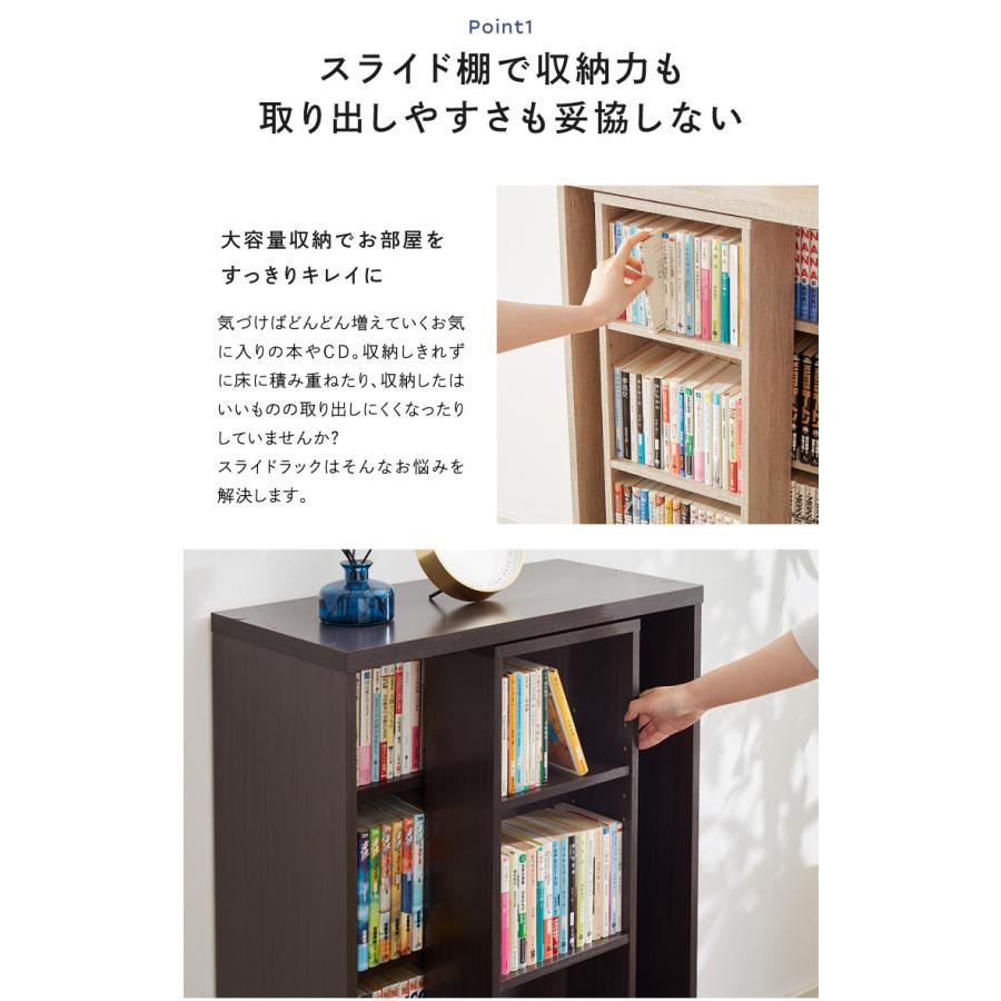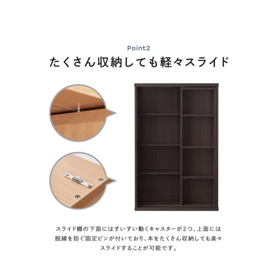 本棚 書棚 スライド式 幅60 シングル 2個セット 木製 コミックラック 漫画 書籍 収納 大容量 ブックシェルフ 木目 おしゃれ ブックラック 書斎棚