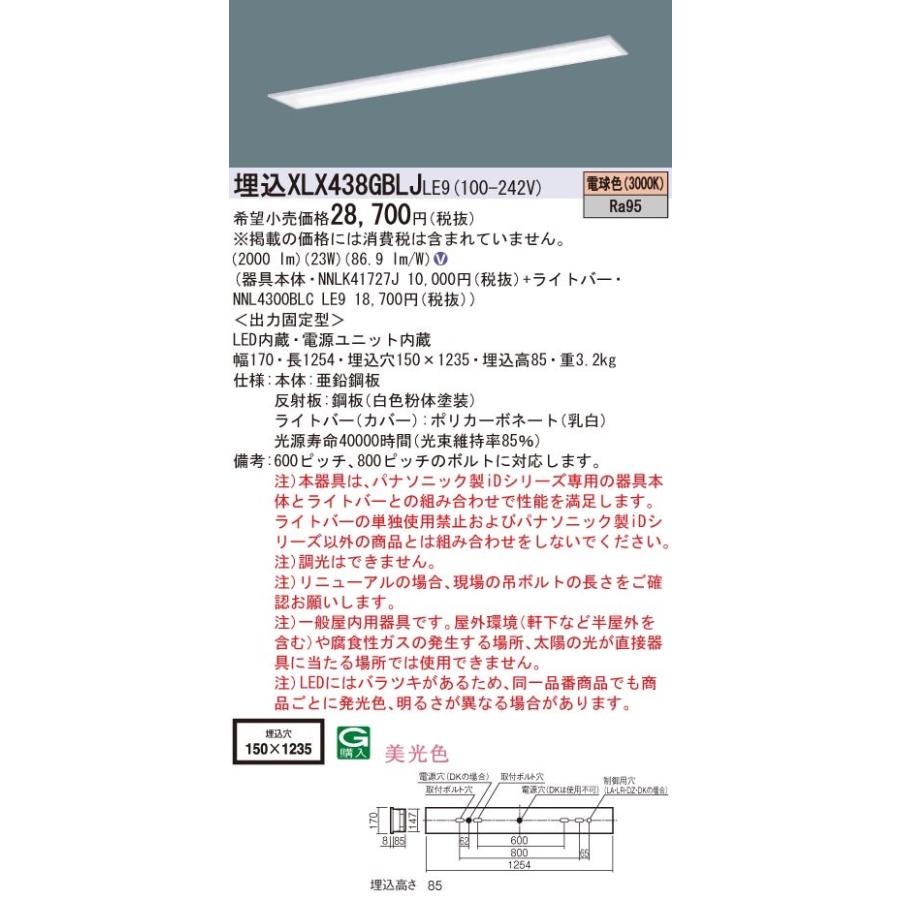 XLX438GBLJLE9 パナソニック 埋込ベースライト LED(電球色)