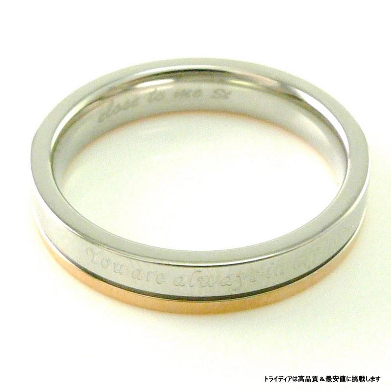 私の心にはいつもあなたがいますの意味の英字をデザインしたすっきりとした細身のデザインリングの下部はそれぞれにカラリングを施した人気のスタイルですシンプルで丈夫なステンレスリングはペアアイテムにピッタリですこちらは本セットでの販売となります素材サジカルステンレス幅約厚み約サイズメンズ号号号号レディス号号号号英字 私の心にはいつもあなたがいます 納期営業日付属品専用ペパバッグケス クリスマス ホワイトデ バレンタイン 誕生日 ジュエリ 贈り物 ギフト