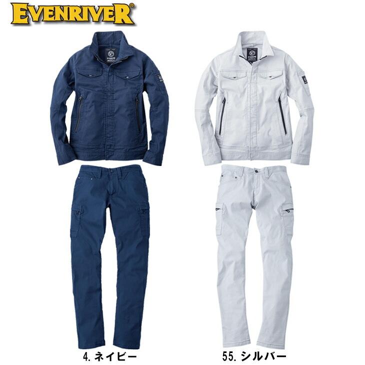 作業服 上下セット イーブンリバー EVENRIVER ストレッチブルゾン ERX307 S-3L & ストレッチカーゴ ERX302 73cm-95cm 春夏 ストレッチ 作業着 メンズ