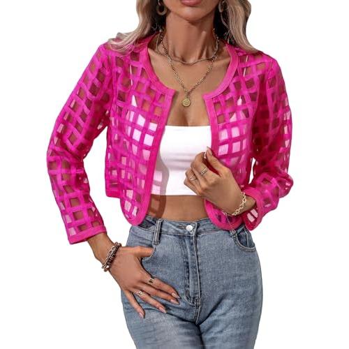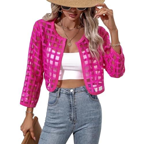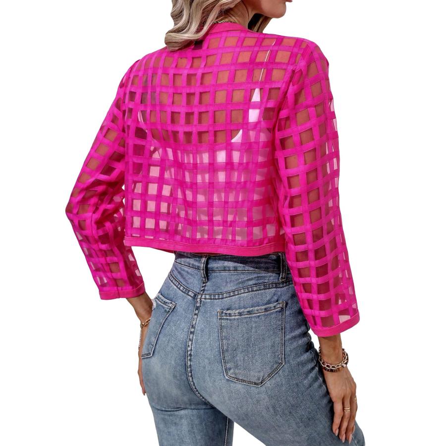 Milumia Women's Plaid Sheer 3/4 Sleeve Open Front Lightweight Cr 並行輸入品