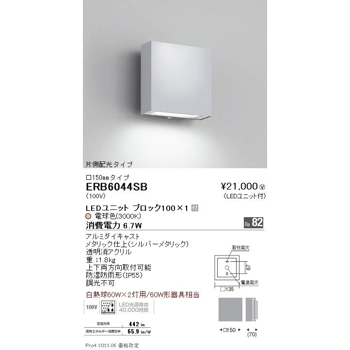 ERB6044SB STYLISH LEDZ アウトドアブラケットライト 片側配光 白熱球60W×2灯用器具相当 BLOCK100 □150mmタイプ 電球色 非調光 遠藤照明 施設照明